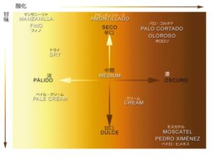 シェリー酒には極甘口から辛口まで様々なタイプがあり、味わいの特徴をまとめられない難しさがあります。